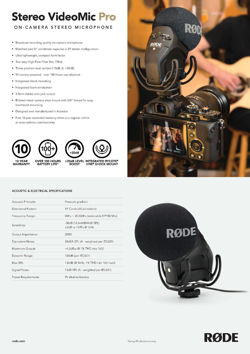 Rode Stereo Videomic Pro Rycote Micrófono Estéreo Montado En Color Black