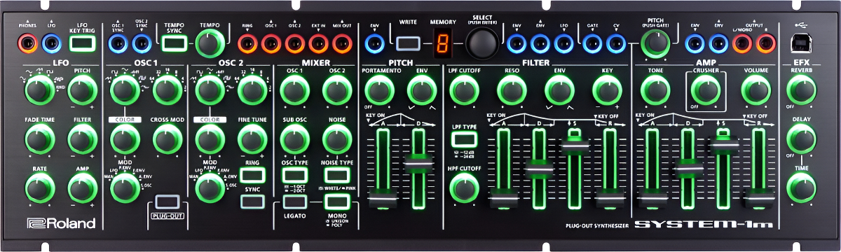 El SISTEMA-1m es un sintetizador semi-modular con capacidad plug-OUT y un diseño único que se puede utilizar como un módulo Eurorack, sintetizador de mesa, o Unidad de 19 “para montaje en rack. Además de ser un poderoso instrumento independiente, el SISTEMA-1m tiene insumos externos y una gran variedad de conexiones CV / Gate que le permiten ser re-parcheado y para interactuar con otros sistemas de sintetizadores modulares. Las conexiones Gate sistema de 1m de CV / combinadas con su capacidad para cargar modelos de sintetizador clásico Roland PLUG-OUT como el SH-101 y PROMARS que dan el poder y la flexibilidad que es simplemente incomparable.