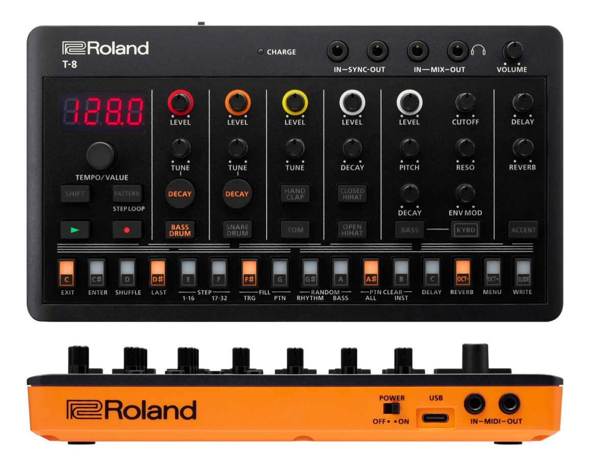 Crea pistas irresistibles en segundos con la T-8 Beat Machine, una central de ritmos en miniatura cargada con las míticas percusiones TR de Roland y los bajos del inimitable TB-303. Monta jams de acid o temazos trap al vuelo con el intuitivo secuenciador de 16 pasos, modela sonidos con controles integrados y trocea y pon ritmos patas arriba con divertidas herramientas manuales que estimulan la creatividad.