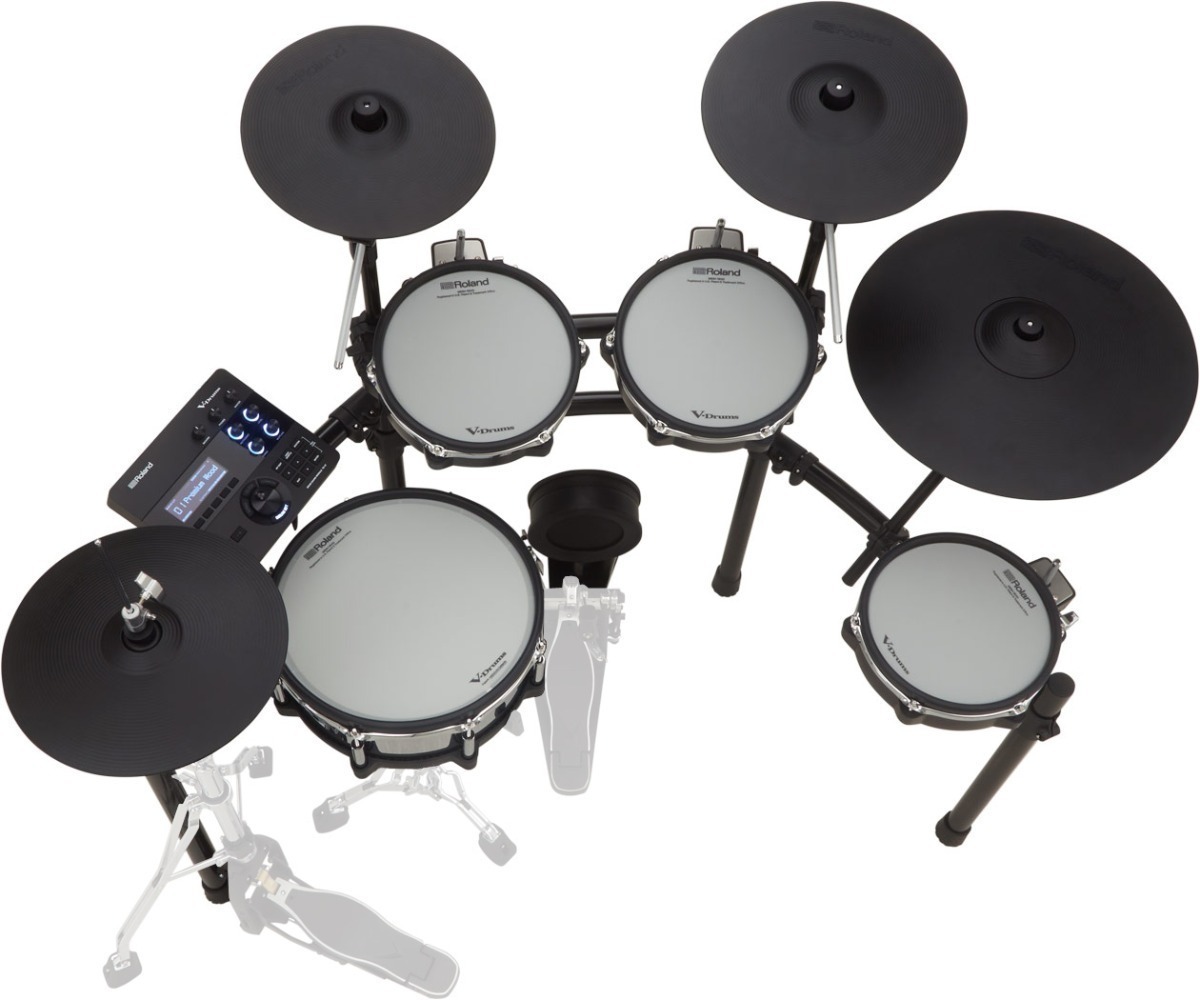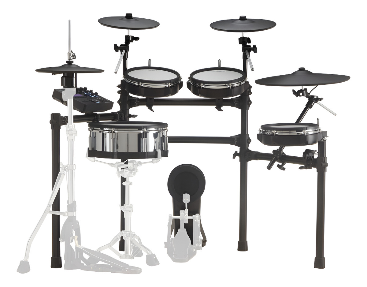 Muchos kits de percusión electrónicos transmiten sensaciones distintas a los kits acústicos, sobre todo porque los pads son más pequeños y tienen menos altura. La TD-27KV rompe esta norma con platos y pads más grandes que ofrecen una disposición espaciosa en la que todos los baterías se sienten como en casa. La caja de acero inoxidable de 14” por 4,3” y los toms de 10” llevan los míticos parches de malla multicapa de Roland, de modo que proporcionan una respuesta insuperable y tensión ajustable con rebote natural. Los platos charles de 12” se montan sobre un soporte de charles acústico estándar, mientras que el plato ride de 18” y los platos crash de 12” y 13” se montan sobre resistentes brazos boom, ofreciendo fantásticas sensaciones de baqueta y un balanceo auténtico.