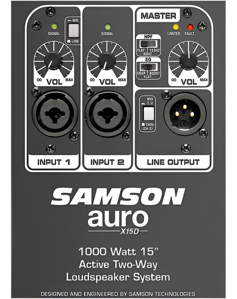 Bafle Potenciado Samson Auro X15d 15” 2 Vias 1000w Color Negro