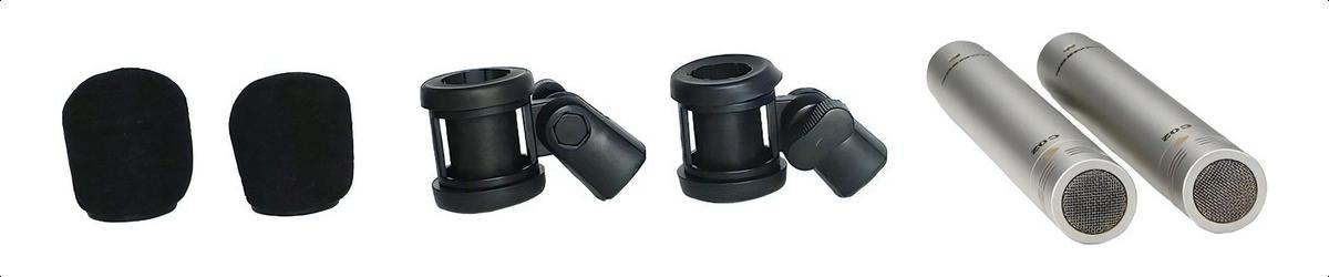 Estuche, 1 soporte de choque, Clips de micrófono montados en choque, Conectores XLR chapados en oro, Parabrisas