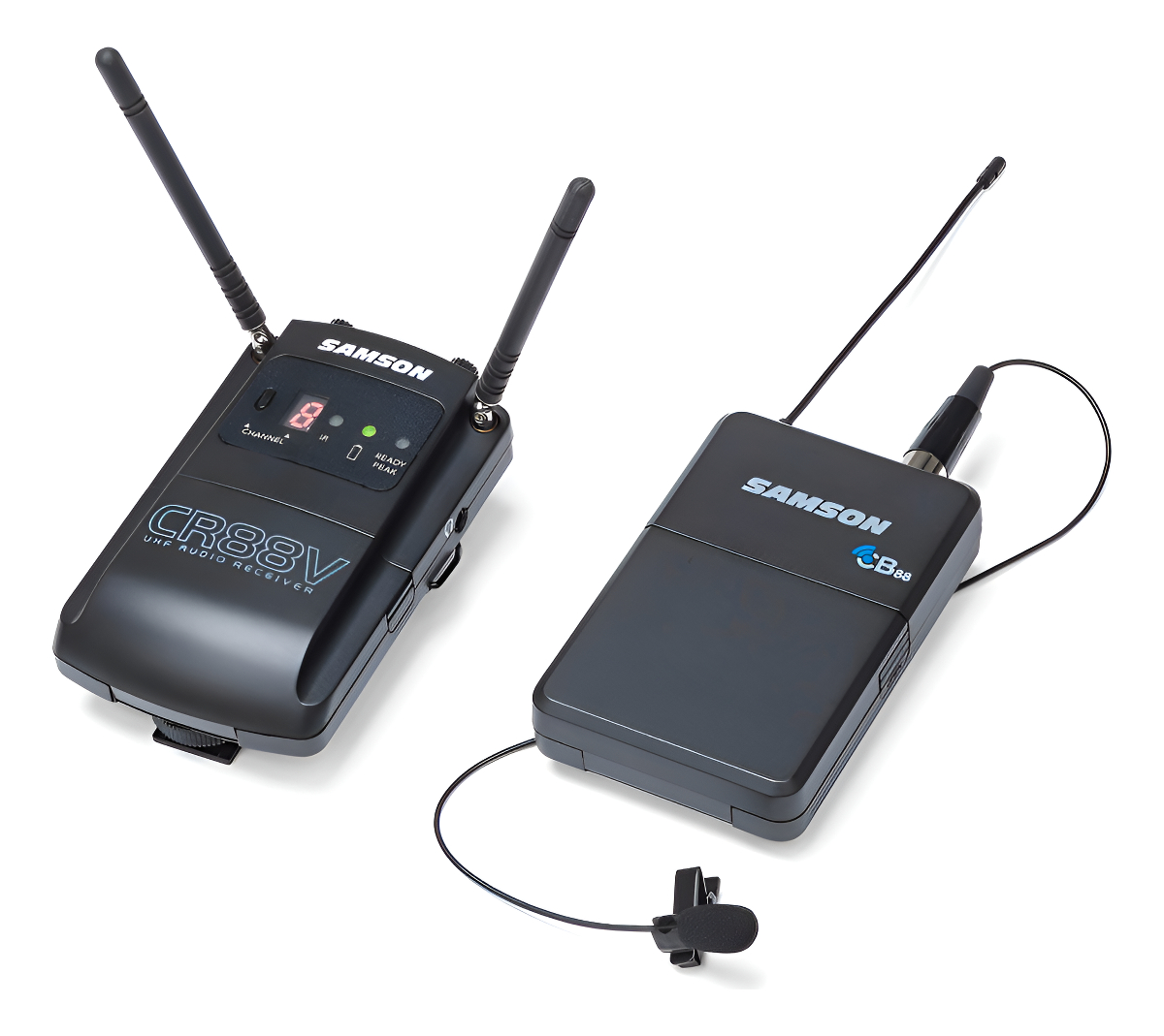 Audio llega al receptor Receptor inalámbrico CR88V Micro a través del transmisor de petaca CB88, que incluye Samson ‘s LM10 micrófono de solapa omnidireccional. Que ofrece ocho horas de autonomía con dos baterías AA (no incluidas), el transmisor CB88 cuenta con un control de ganancia variable, popless 1 toque botón y cinta metálica Silenciar clip. Show Music te lo recomienda y te presenta las características