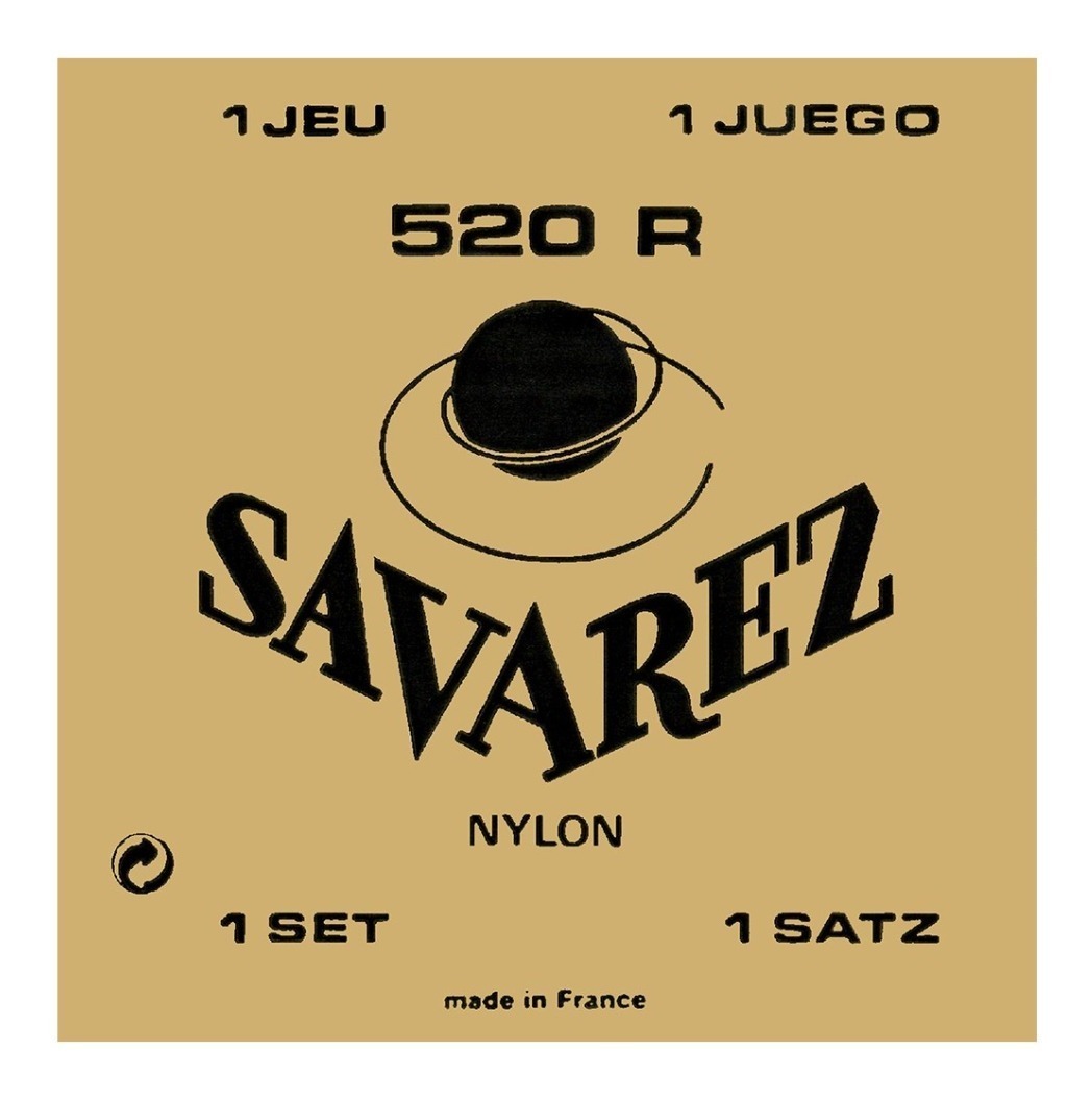 Cuerdas para guitarra clásica/flamenca Savarez 520R, tiples en nylon rectificado, bordones tradicionales de entorchado plateado. Show Music, en el barrio de Belgrano, te lo recomienda.