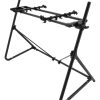 El Standard-S-ABK es ideal para un teclado de 61 notas. Fabricado en tubo de aluminio con acabado en negro, este elegante soporte soporta su instrumento de manera funcional. La altura, ángulo, profundidad y la cantidad de niveles de los bastidores del teclado se pueden ajustar, lo que permite crear los mejores ajustes para la configuración de su equipo. Como es de esperar de esta unidad de aluminio, es extremadamente ligera y portátil, por lo que es una excelente opción para escenario, estudio o cualquier situación.