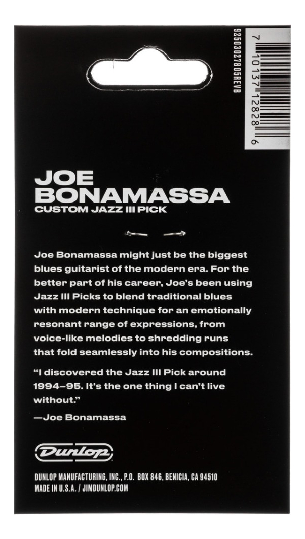 Púas Jim Dunlop Joe Bonamassa Signature Jazz III Gold Pack X 6 Unidades