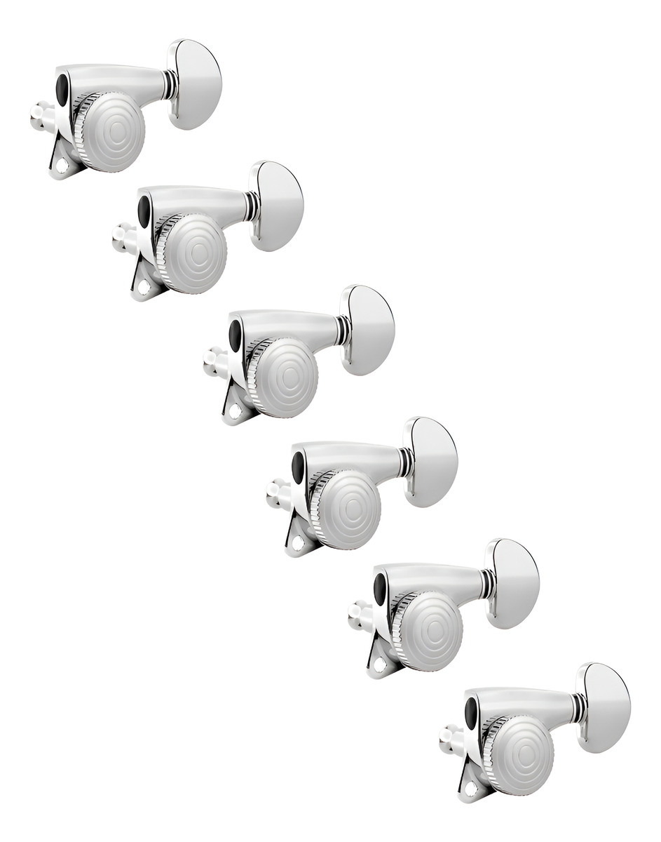 Clavijero p/electrica o acustica 6 en línea, con bloqueo de cuerda, cromado, hidraulico, en cajita, perilla pequeña