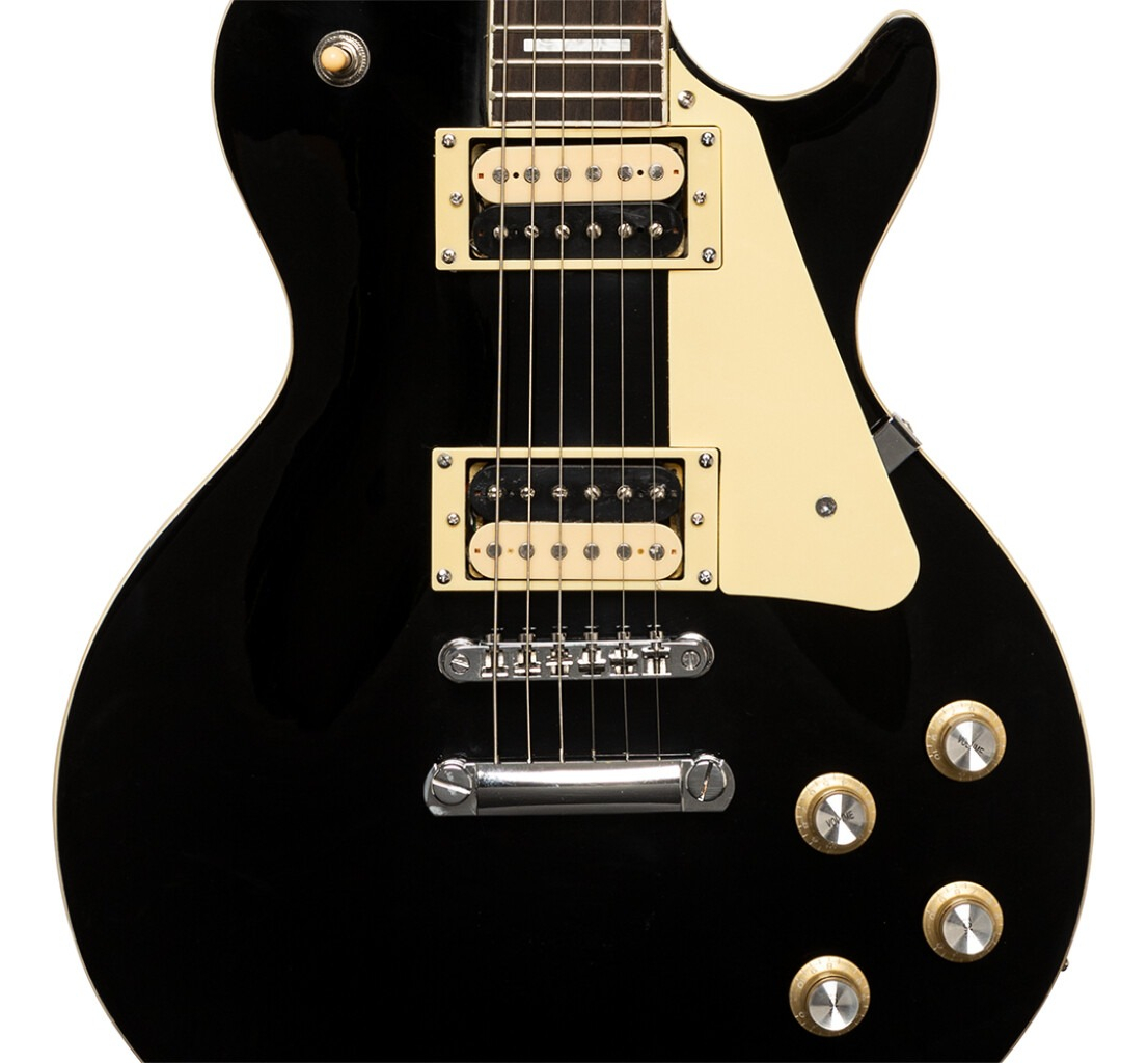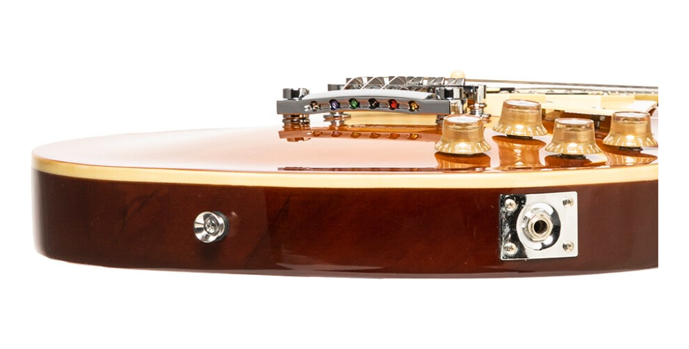Con la SEL-STD, el exitoso fabricante STAGG ofrece una elegante guitarra eléctrica con una facilidad de ejecución notable y un sonido versátil. Elementos seleccionados como un cuerpo de caoba, afinadores fundidos a presión con botones cromados, una construcción de mástil-cuerpo pegada y un puente “Tune-o-matic con Stop Tail-piece” le dan al instrumento una vida útil particularmente larga, mientras que el El mástil de caoba tiene un acabado de alto brillo. El acabado natural y el diapasón de palisandro garantizan una experiencia de juego única. De particular importancia son las dos pastillas “B&W, Zebra Humbucker”, que aseguran un sonido voluminoso y equilibrado.