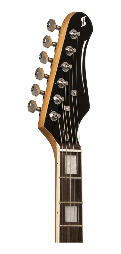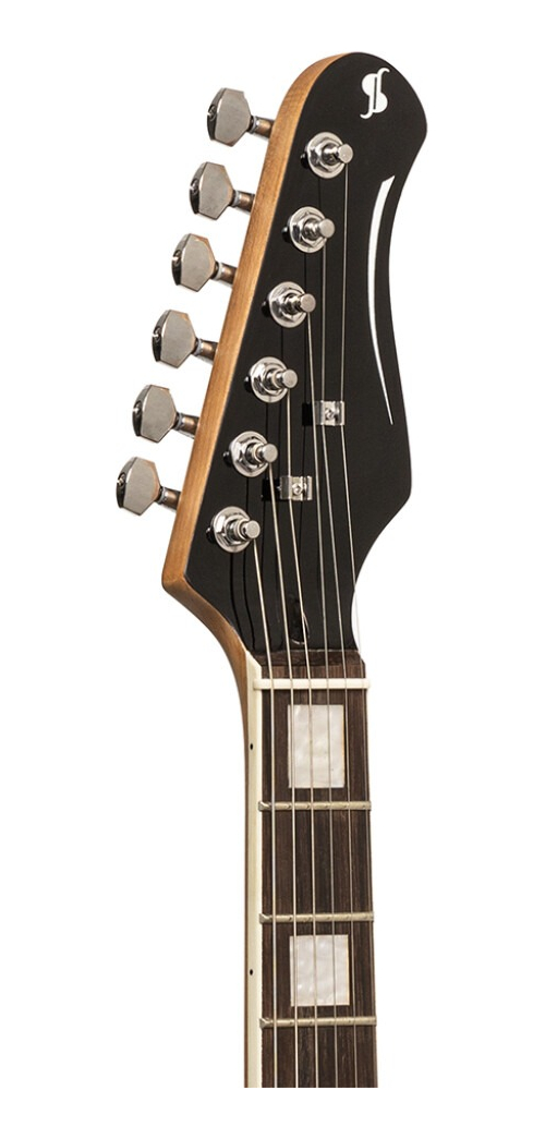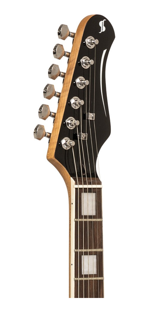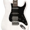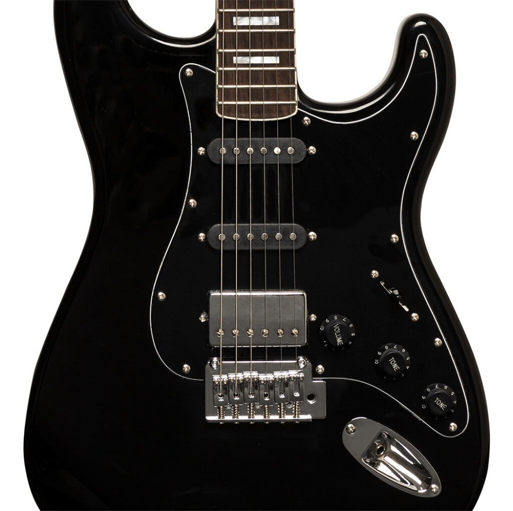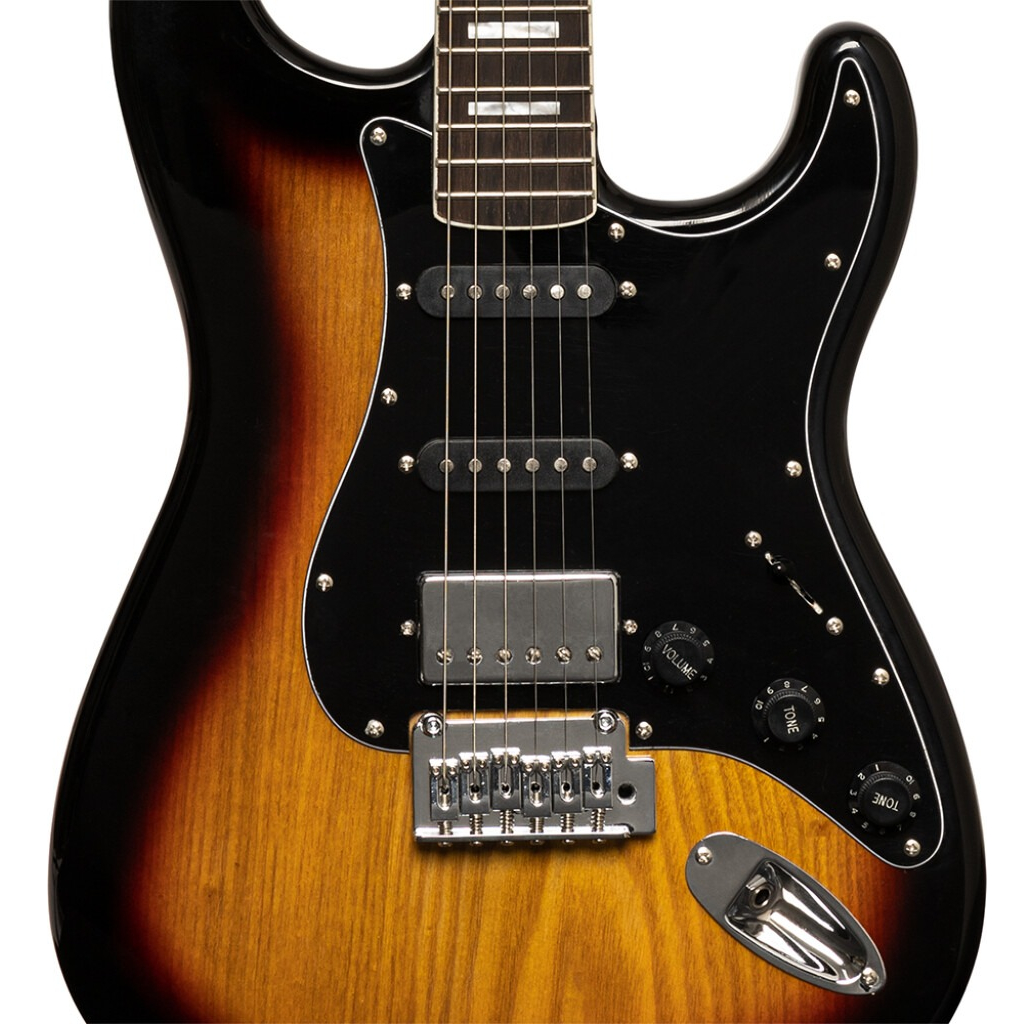La guitarra perfecta para principiantes, esta guitarra eléctrica tiene un cuerpo de aliso sólido y un mástil atornillado, con fácil acceso hasta los últimos trastes. El mástil de arce tostado es resistente al movimiento de los cambios de humedad e incluye citas que se encuentran en guitarras más caras, como encuadernación, diapasón de palisandro e incrustaciones de bloques. Las 2 pastillas de una sola bobina de la guitarra y 1 humbucker permiten la versatilidad de los tonos.