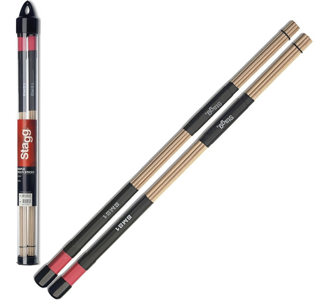 STAGG SMS1 es un juego de 12 varillas finas de arce envueltas en un mango de plástico. Estas varillas, también conocidas como “Hot Rods”, están diseñadas para producir un sonido más suave y matizado en comparación con las baquetas tradicionales.