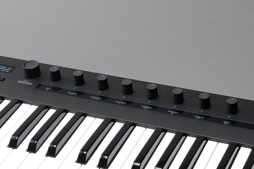Rueda de pitch bend, rueda de modulación, mandos de control de parámetros × 8