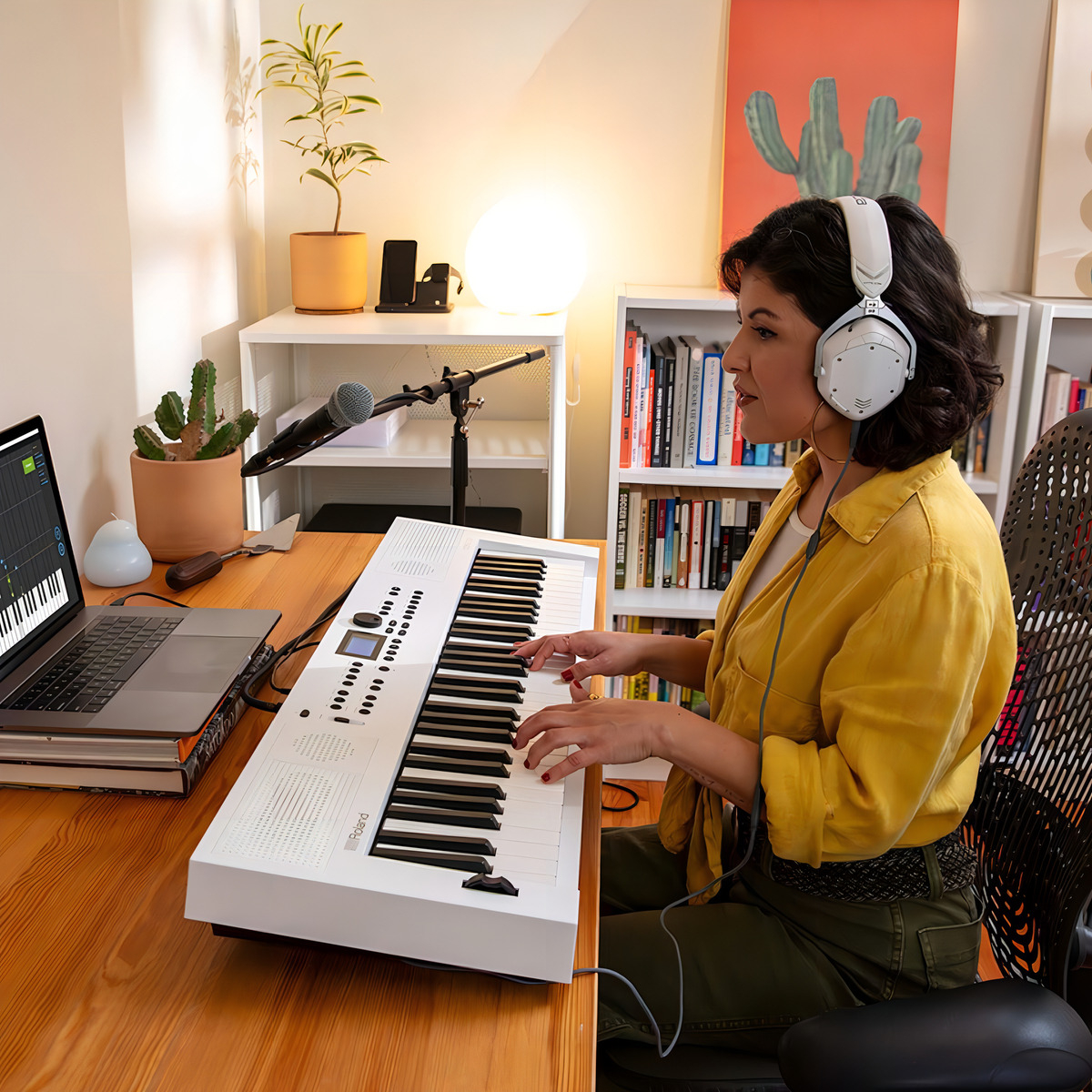 5, en elegante color blanco, es ideal tanto para principiantes como para músicos experimentados que buscan inspiración y creatividad. Este teclado portátil ofrece una experiencia de juego intuitiva y accesible con una amplia gama de sonidos y funciones. Equipado con la tecnología de sonido de Roland, garantiza una calidad de audio superior. Su diseño compacto y ligero facilita su transporte, permitiéndote llevar tu música a cualquier lugar. Con el Roland GO
