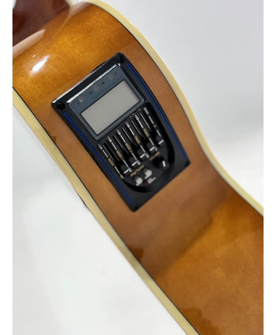Formato de Cuerpo (Shape): Auditorium / Orchestra Model (OM). Este diseño de 40 pulgadas ofrece un balance tonal superior y una comodidad ergonómica, siendo ligeramente más compacto que un Dreadnought pero con una excelente proyección.