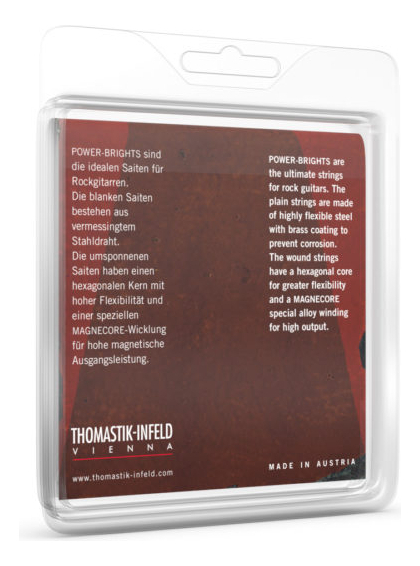 El set de cuerdas para guitarra eléctrica Thomastik Power-brights PB110 medium-light tiene gran rendimiento y impulso en frecuencias altas. Genera un tono brillante y agresivo, y tiene un sustain extra largo. Resulta muy fácil de tocar con él y mejora los armónicos.