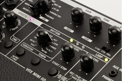 El VOX MINI GO es un amplificador de modelado de guitarra portátil que cubre todas las necesidades, desde la práctica hasta la actuación en directo, en casa, en salas de conciertos o al aire libre. Ligero, portátil y alimentado por una batería móvil. Ofrece modelos de amplificadores potentes y realistas basados en los que ofrece el Cambridge50, así como un vocoder de reciente desarrollo para efectos de modulación de voz, efectos integrados que te permiten crear una amplia gama de sonidos, una entrada de micrófono, entrada AUX, una toma de auriculares y una unidad de ritmo que puede reproducir patrones de distintos géneros. Con un altavoz de 5 pulgadas y 3w de potencia. Dispone de una unidad de ritmos de alta calidad incorporada. Este modelo es perfecto para divertirse tocando junto con ritmos en casa o para uso al aire libre. Modelos de Amplificador: 11. Efectos: 8. Ritmos: 33. Batería portátil recomendada con una potencia de 1,5 A o superior. Adaptador de corriente (12v) incluido. Dimensiones: 256 x 180 x 249 mm. Peso: 3.5 Kg.