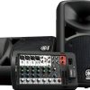 – Sistema de sonorización compacto compuesto por 2x altavoces pasivos de 2 vías y mesa amplificada de 10 canales