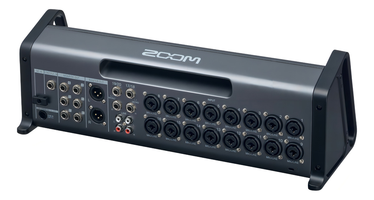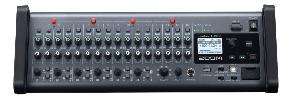 El Zoom LiveTrak L-20R es un mezclador digital de 20 entradas y grabador multipista, ideal para actuaciones en vivo, grabación de estudio, ensayos de banda, podcasts y más. A pesar de su tamaño compacto, el L-20R es altamente flexible y se puede montar en un bastidor, con orejas de bastidor incluidas para facilitar la instalación.
